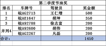以下是公司兩個(gè)季度節(jié)油獎(jiǎng)及安全獎(jiǎng)人員名單: